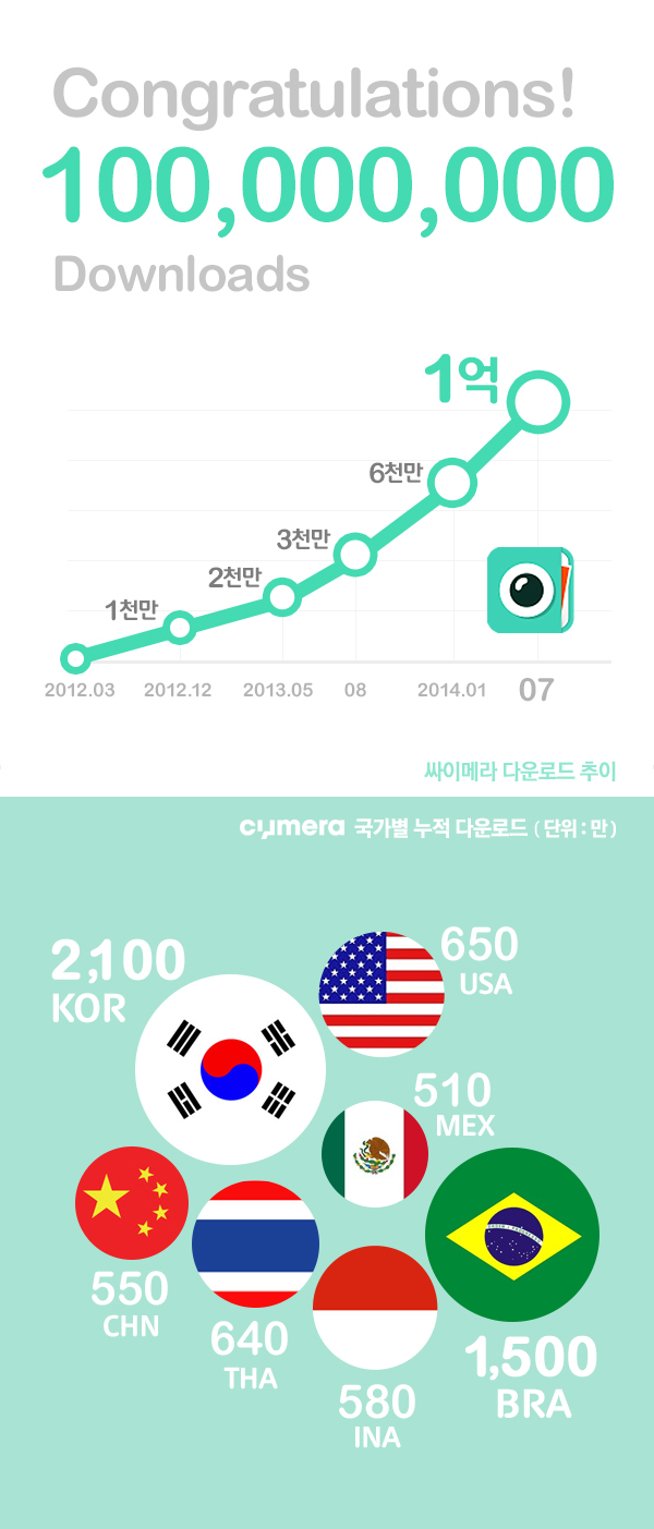 싸이메라 강민호 사업부장은 “마침내 1억 규모의 이용자 기반을 구축함으로써 명실상부한 글로벌 서비스로서의 입지를 마련하게 됐다”며, “앞으로 플랫폼 기능 강화에 더욱 박차를 가하는 한편 본격적인 글로벌 마케팅 및 제휴를 통해 동서양을 아우르는 글로벌 NO.1 포토SNS에 도전하겠다”고 말했다.