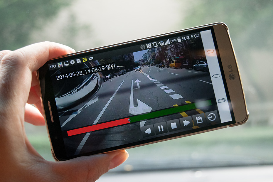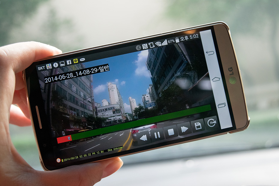 또한 스마트폰 전용앱을 통해서 블랙박스의 시간, 감도등 기존의 블랙박스들은 PC 전용프로그램에서만 할 수 있던 셋팅들을 할 수 있어서 상당히 맘에 들었습니다. 전용앱에서 최신 펌웨어로 업글이 이뤄진다는 점도 맘에 들었고 말이죠. 더 이상 메모리카드에 펌웨어 파일 넣어서 업그레이드하는 그런 일은 없는 겁니다.