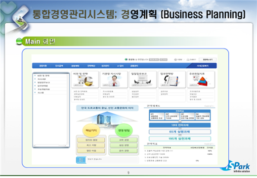 이즈파크의 통합경영관리 시스템은 경영계획(BPS), 사업관리/전략예산(SBS), 성과관리(KPI IT) 시스템 등으로 구성돼 있다.