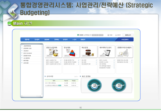 사업관리/전략예산(Strategic Budgeting) 시스템은 BPS(경영전략 모듈등 경영계획시스템) + SBS(사업관리, 전략예산, 재무위험관리 모듈 등 예산재무시스템) + KPI(핵심 성과지표) 알고리즘 관리 시스템이 연동돼 정보를 제공한다.