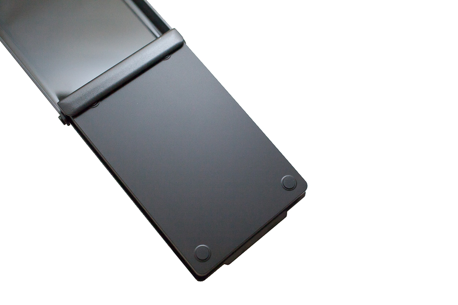 반대쪽에는 스위치가 있어서 스위치를 누르지 않으면 키보드가 펴지지 않게 설계가 되어 있습니다. 폴딩된 키보드가 덜렁 덜렁 거릴 일은 없겠죠?