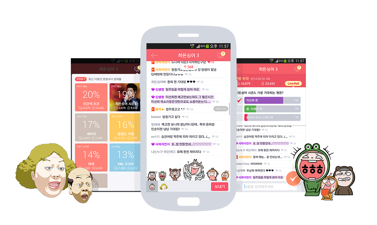 특히, 프로그램 본 방송 시간에만 개설되는 ‘본방수다’에서는 시청 중 느낀 생각이나 의견을 실시간으로 소통할 수 있다고 덧붙였다. 본방 인증 스티커 획득을 통해 프로그램별 수다레벨을 올릴 수 있고, 클릭 시 4단계로 감정상태가 고조되는 이모티콘으로 시청소감 등을 표현할 수도 있다.
