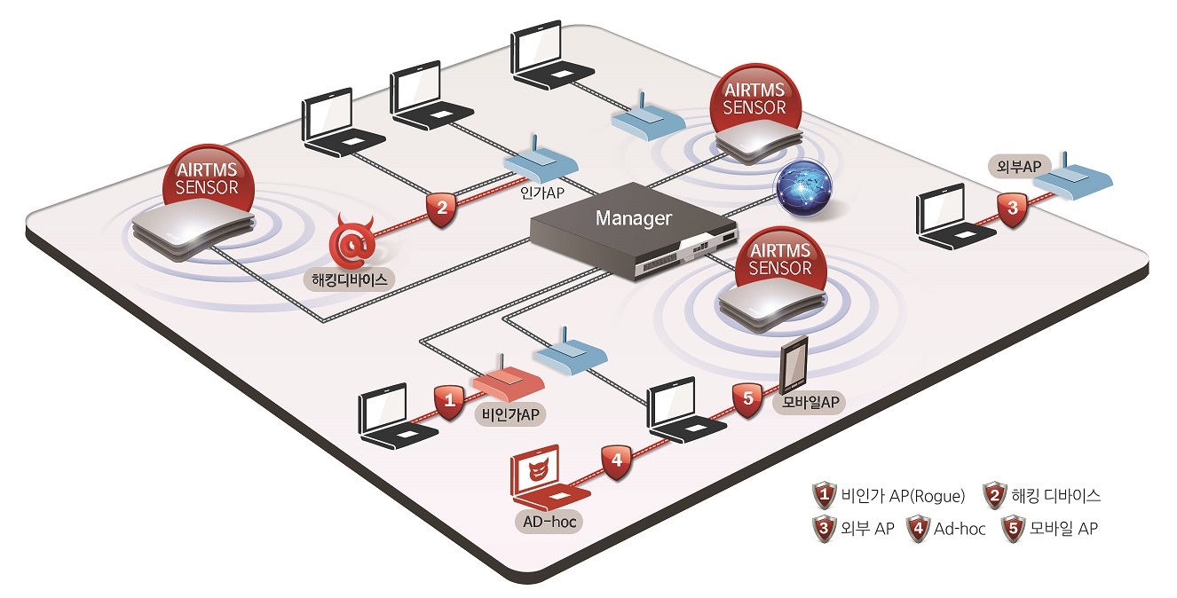 다시 말해 사내에 엄연히 존재하는 외부 AP 신호와 내부 비인가 AP가 존재하기 때문에 다양한 정책을 기반으로 무선보안솔루션, 특히 WIPS의 도입은 필요하다고 할 수 있다.