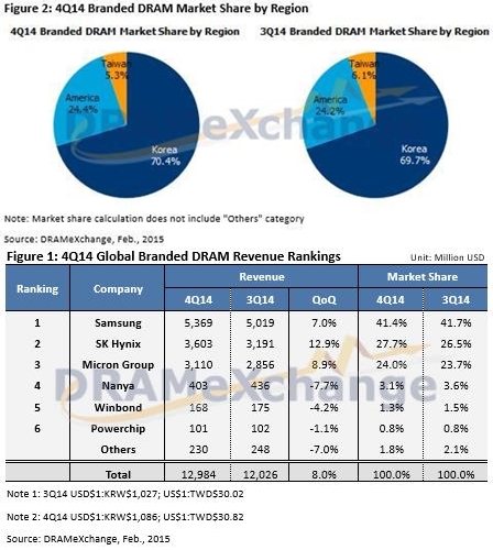 ▲ 2014년 4분기 글로벌 D램 시장 조사 결과 (출처: D램익스체인지)
