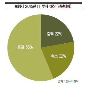 또 정보시스템 구축을 위한 서버를 도입하는데 있어 ▲유닉스(67%) ▲x86 랙형 서버(56%) ▲x86 블레이드 서버(22%) ▲어플라이언스(22%) 순으로 도입할 것이라고 답했다. 이같이 2015년 보험업계 IT 예산은 보안 위주로 집중되고 있지만 하드웨어나 서버시스템에도 꾸준히 투자되고 있는 것으로 나타났다.