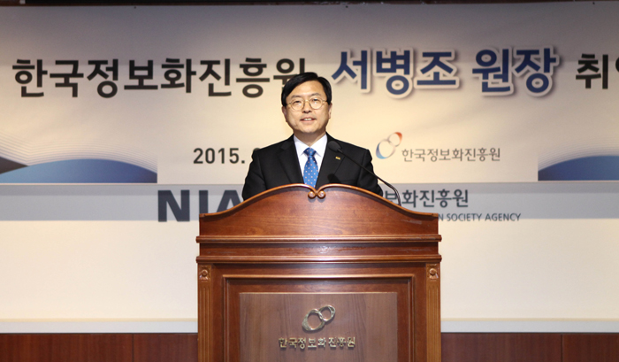 서병조 원장은 23일 취임식에서 “최근 정보화 환경변화는 초연결 사회로의 급속한 전환으로 요약될 수 있다”고 강조하며 “세계 최고의 정보화 정책개발 및 기술지원 기관으로의 도약을 위해 정책기획 기능을 강화하고 열린 소통인사를 통해 임직원들이 역량을 최대한 발휘할 수 있도록 조직과 인사제도를 개선해 나가겠다”고 밝혔다.