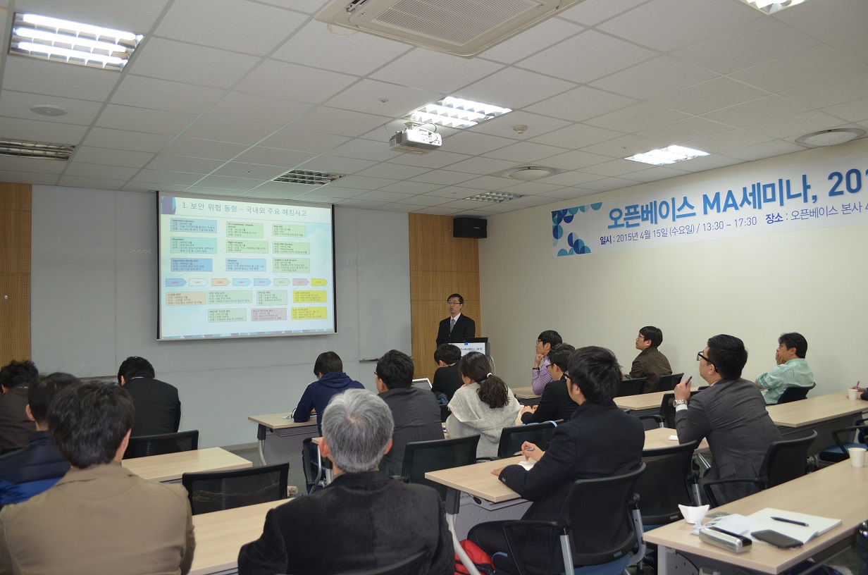 [컴퓨터월드] 네트워크 및 보안 솔루션 전문기업 오픈베이스가 지난 4월 15일 서울 양재동 본사 교육장에서 고객사들을 대상으로 한 유지보수(Maintenance, MA) 세미나를 개최했다. MA 세미나는 오픈베이스가 제공하는 솔루션을 사용하거나 서비스를 지원 받는 고객 등 실제 사용자들이 참석하는 기술 중심의 세미나로, 오픈베이스는 지난 2003년부터 올해까지 12년간 세미나를 진행해왔다.