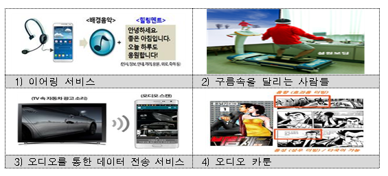 이번에 선정된 주요한 스마트미디어 서비스는 ▲스마트폰에 이어폰을 연결하고 앱을 실행하기까지의 시간에 힐링멘트를 전달해주는 서비스 ▲가상현실 작동 헬멧을 쓰고 보드위에 올라 윈드서핑, 스키 등을 실제로 타는 것과 비슷하게 체험할 수 있는 서비스 등이다.