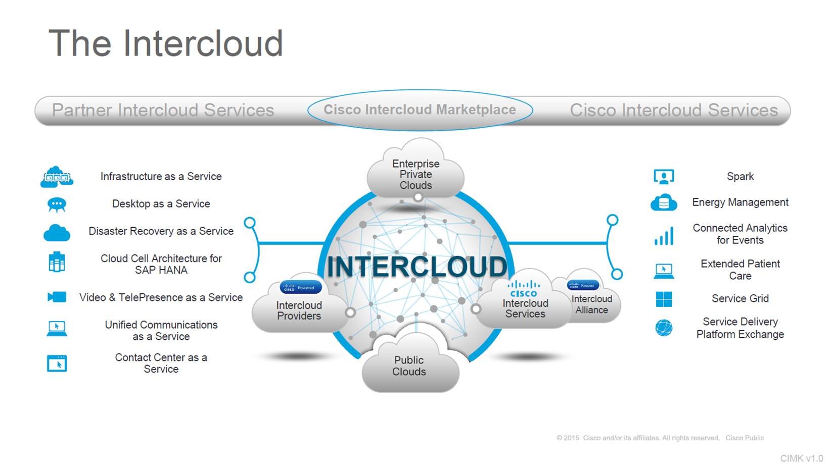 파트너 중심의 글로벌 인터클라우드 마켓인 시스코 인터클라우드 마켓플레이스는 시스코와 파트너사의 애플리케이션 및 서비스를 제공한다. 인터클라우드 마켓플레이스는 2015년 가을 오픈될 예정이다.