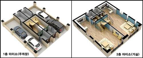 2층에 넓은 거실과 주방이 있으며, 3층에는 작은방 2개와 안방 1개, 다락방과 옥상 테라스를 이용할 수 있도록 설계 되어 있다고 한다. 특화 수납 설계로 방 마다 붙박이 장과 수납장을 두었고, 1층은 주차장으로 2.5대와 생활에 세대별 창고가 마련되어있다.