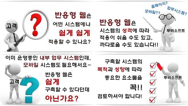 [그림1]은 최근 고객과의 기술미팅에서 빈번하게 발생하는 대화 내용이다. 나는 고객에게 명확한 답을 내려주지 않고 다시 질문한다. 어떤 시스템을 구현하고자 반응형 웹을 고려하고 있는지 말이다.