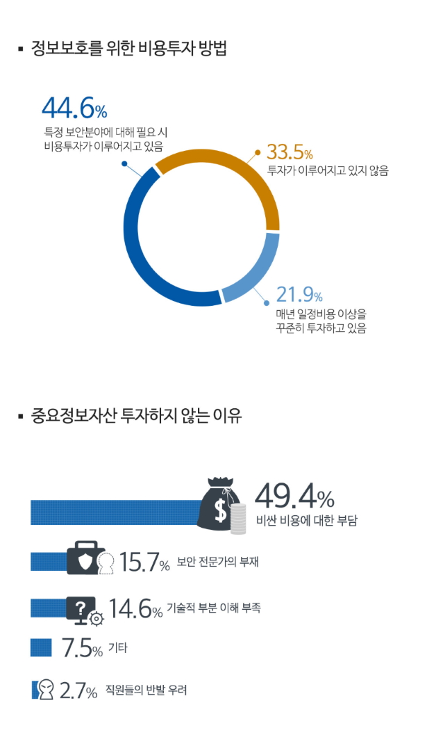보안 솔루션을 도입한다고 해도 이를 전담해서 관리할 수 있는 인력도 없다는 것이 문제다. 중소기업 입장에서는 인력 및 인건비가 회사 운영에 큰 영향을 미치는 만큼, 보안 솔루션을 운영·관리하기 위한 전담 인력을 두는 것이 부담으로 다가오기 때문이다.
