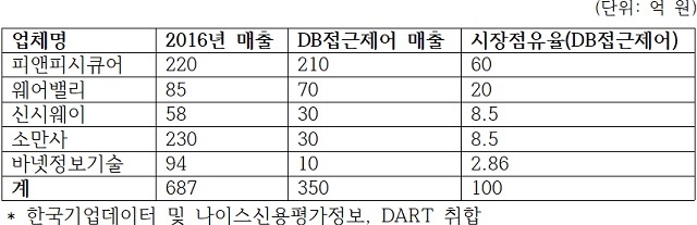 한편 국내 DB접근제어 솔루션 시장은 1위를 차지한 피앤피시큐어와 하위 기업들 간의 매출격차로 인해 하위권 업체들은 사업을 축소하거나 사업방향을 수정하고 있는 것으로 알려지고 있다.