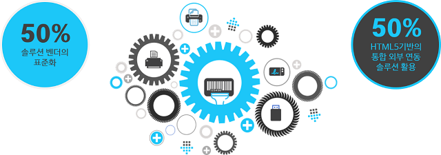 또한, 기존 시스템을 웹 표준으로 전환하면서 당면하게 되는 문제점 중 하나는 기존 IT자산과의 효율적인 연동이다. 이번 프로젝트에도 40여 개 이상의 외부 시스템과 디바이스의 연결을 웹 표준 환경에서 진행하는 것이 큰 과제였다. 외부 시스템과 디바이스를 제공하는 기업이 웹 표준 환경에 대응한 경우는 전체 50% 수준으로, 나머지 50%는 공급 기업이 문을 닫았거나 웹 표준에 대한 대응을 제공하지 않는 경우였다. 이를 해결하기 위해 디바이스와 시스템 연동에 HTML5 통합 플랫폼 ‘W기어(W-Gear)’를 도입, 기존 자산을 활용해 HTML5로 전환하면서 다양한 디바이스와 시스템을 통합 관리·변경할 수 있게 함으로써 비용 절감과 관리효율성 제고를 꾀했다.