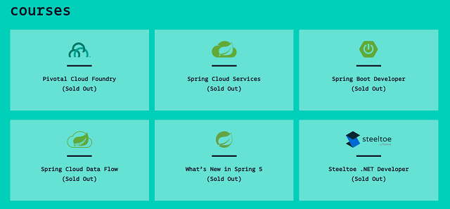 스프링 관련 교육으로는 ▲클라우드 환경에서 확장성과 내구성 기반의 애플리케이션 구현이 가능한 스프링 클라우드(Spring Cloud) ▲종전 스프링 프레임워크의 생산성을 더욱 높인 스프링 부트(Spring Boot) ▲마이크로서비스 애플리케이션 간, 다양한 데이터 저장소 간 데이터를 주고받으며 프로세싱할 수 있는 스프링 클라우드 데이터 플로우(Spring Cloud Data Flow) ▲스프링 클라우드 서비스의 닷넷 버전인 스틸토(Steeltoe) 등이 준비됐다.