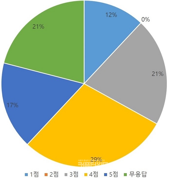 ‘이미 BI 솔루션을 도입해 활용하고 있다’는 응답자에게 사용 중인 솔루션에 대한 만족도를 조사해봤다. BI솔루션을 활용하는 응답자 53% 중 절반에 가까운 46%는 4점과 5점으로 응답해 솔루션에 만족하고 있는 것으로 조사됐다. 다만 12%는 매우 불만족이라고 응답했으며, 그저 그렇다는 평가도 21%에 달했다. 또 선호도 조사에 응답하지 않은 비율도 높게 나타나 아쉬움을 남겼다.