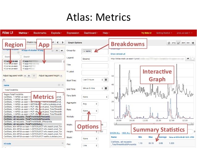 하나의 시나리오를 예로 들어보자. 애플리케이션의 운영을 위해서는 상태 정보를 일레스틱 서치와 같은 원격 시스템으로 보내고, 필요에 따라 내 애플리케이션의 동작 상태에 대해 자세한 정보를 얻을 필요가 있다. ‘오퍼레이션 인텔리전스’라고 불리는 이 처리를 위해 넷플릭스는 플랫폼 엔지니어링에 의해 Spectator/Servo와 Atlas 시스템을 각 마이크로 서비스 팀에 제공한다.