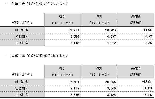별도기준 매출 247억 원, 영업이익 28억 원을 달성했다. 전년동기대비 매출과 영업이익은 각각 14%, 31.7% 감소했다.