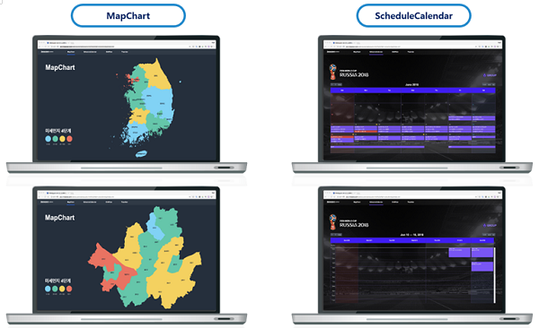 다양한 Depth까지 표현이 가능한 Map Chart, 전문 스케줄러와 견줄 수 있는 Schedule Calendar, 다양한 병합 기능과 동적 컬럼 머지 기능 등을 추가한 Grid View, 대용량 데이터에서 더욱 빨라진 Tree View등 신규 컴포넌트와 강화된 컴포넌트가 편의성을 더해준다.