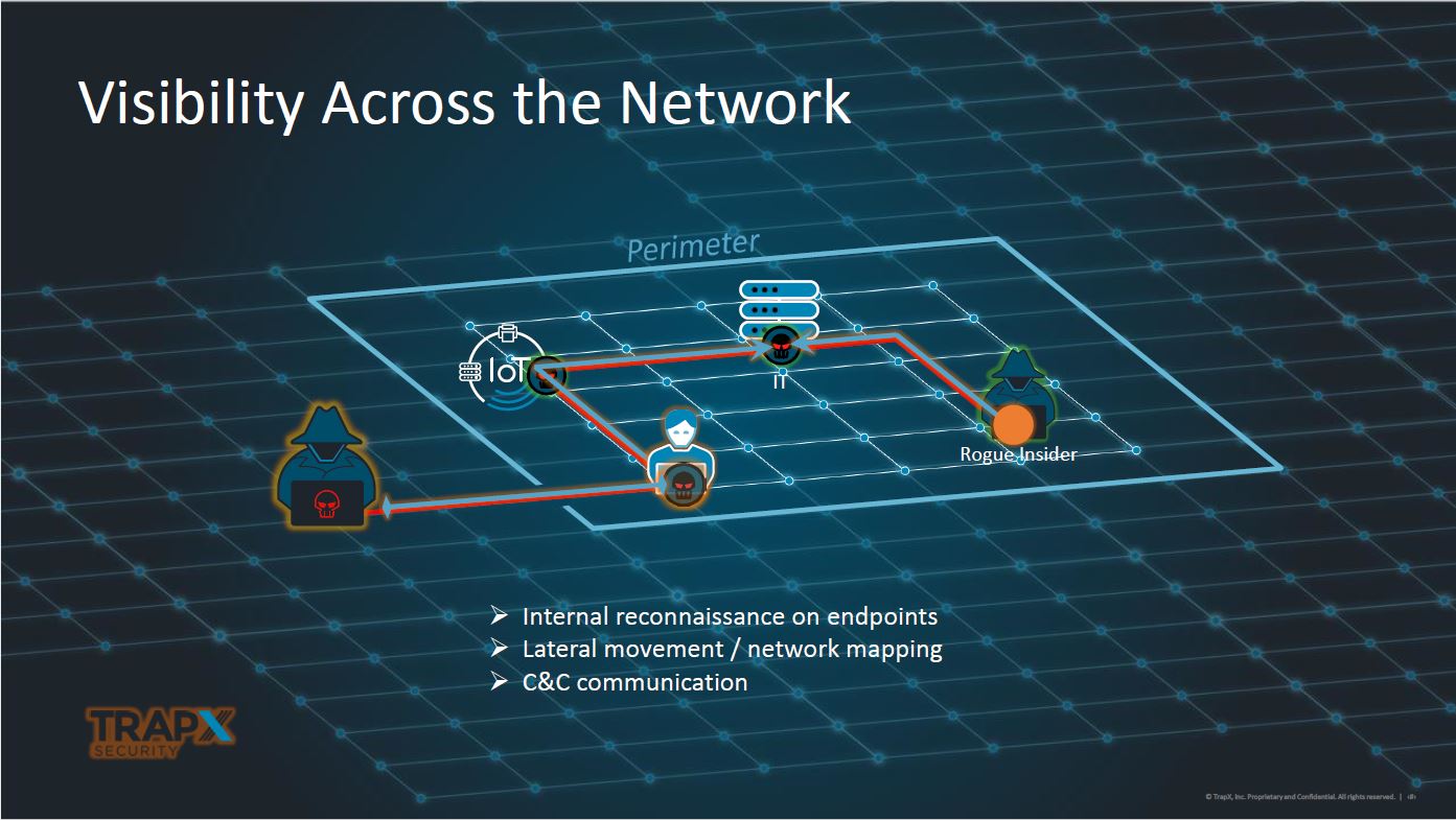 사이버 디셉션 기술은 조직의 네트워크 상단에서 외부에서 침투해 들어오는 것을 감시하는 것이 아니라, 조직 네트워크의 전체 가시성을 갖고 이상 징후를 탐지하는 것이기 때문에 조직의 내부에서 악성 행위를 하는 내부자를 손쉽게 탐지 할 수 있다.