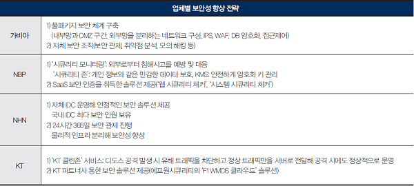 가비아는 또한 매니지드 서비스와 보안 관제 서비스를 직접 담당하는 내부 운영관리 조직 및 보안 운영 조직을 갖추고 있어 보안파트너와 협업해야 하는 다른 업체들과는 달리 쉽고 빠르게 각종 문제에 대응할 수 있다.