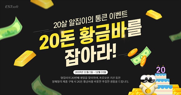 이번 ‘20살 알집이의 통큰 이벤트’는 ‘알약’과 ‘알툴즈’ 등 자사 제품을 50만 원 이상 구매한 기업, 공공, 교육 분야의 전 고객을 대상으로 진행된다.