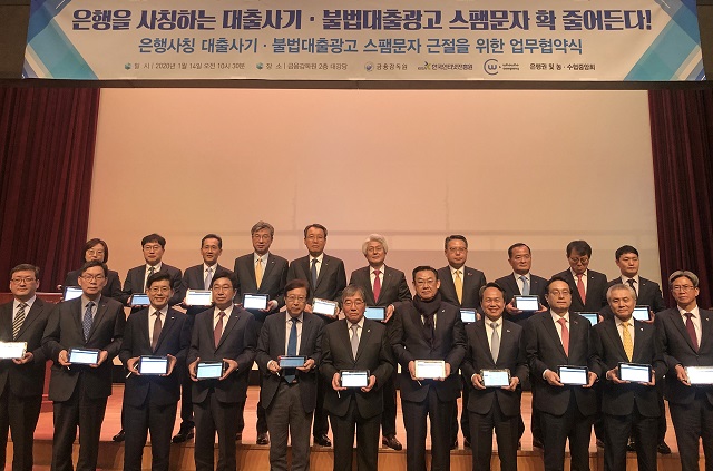[아이티데일리] 한국인터넷진흥원(원장 김석환, 이하 KISA)은 금융감독원(원장 윤석헌, 이하 금감원), 은행연합회(회장 김태영), 농협중앙회(회장직무대행 허식 부회장), 수협중앙회(회장 임준택), 15개 은행, 후후앤컴퍼니(대표 허태범) 등과 함께 대출사기 및 불법대출 스팸문자 근절을 위한 업무협약(MOU)을 14일 금감원 서울본원(여의도)에서 체결했다고 밝혔다.