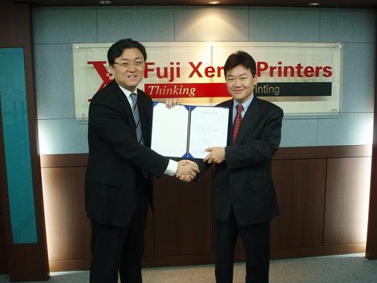 후지제록스프린터스 황유천 대표(좌)와 한국오릭스렌텍 노구치 시게루 대표(우)