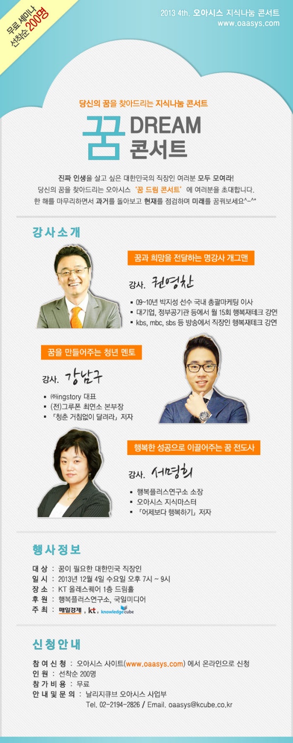 [아이티데일리] 직장인 지식포털 오아시스가 직장인을 대상으로 ‘꿈 Dream 콘서트’를 개최한다.